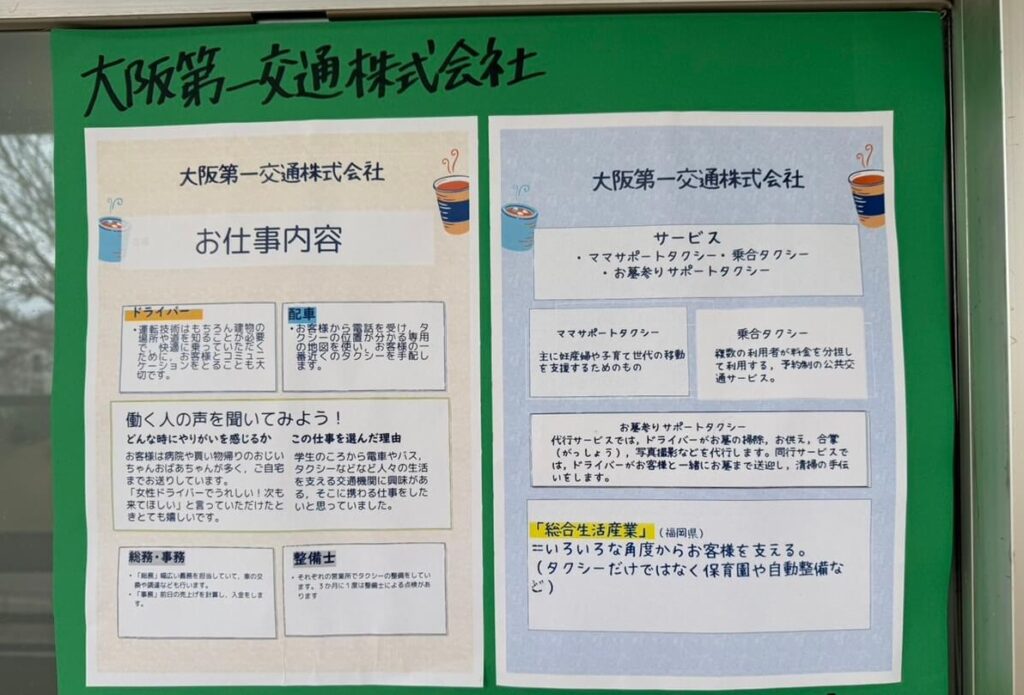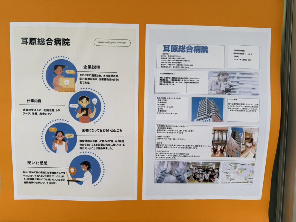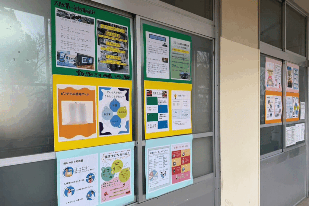 今回の出張授業は、当日の学びだけでは終わりませんでした。 授業後、生徒たちは学んだ内容をPowerPointにまとめ、クラスや学年で発表会を実施。さらに、企業の魅力を凝縮したポスターを作成し、校内に掲示してくれました。