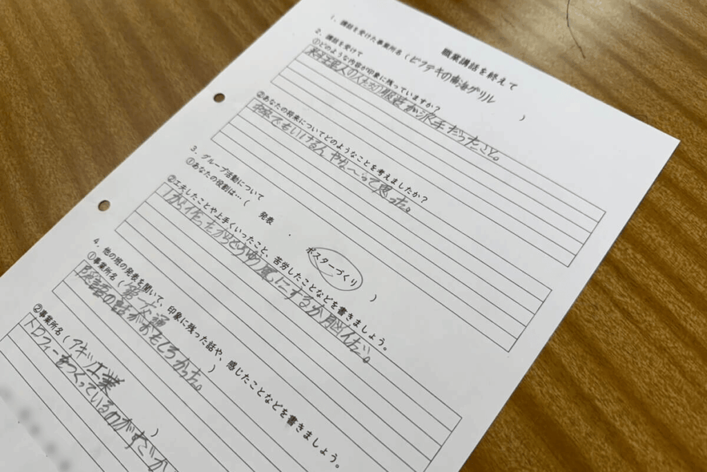 自分たちの言葉でまとめ、誰かに伝えるというプロセスを経ることで、仕事に対する理解がより一層深まった様子が伺えます。こうした生徒たちの主体的な姿勢は、協力いただいた企業の方々にとっても大きな励みとなりました。