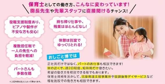 保育士として働きたいけど不安がある方、すぐに復帰予定ではないが、情報収集したい方におススメのセミナーです!